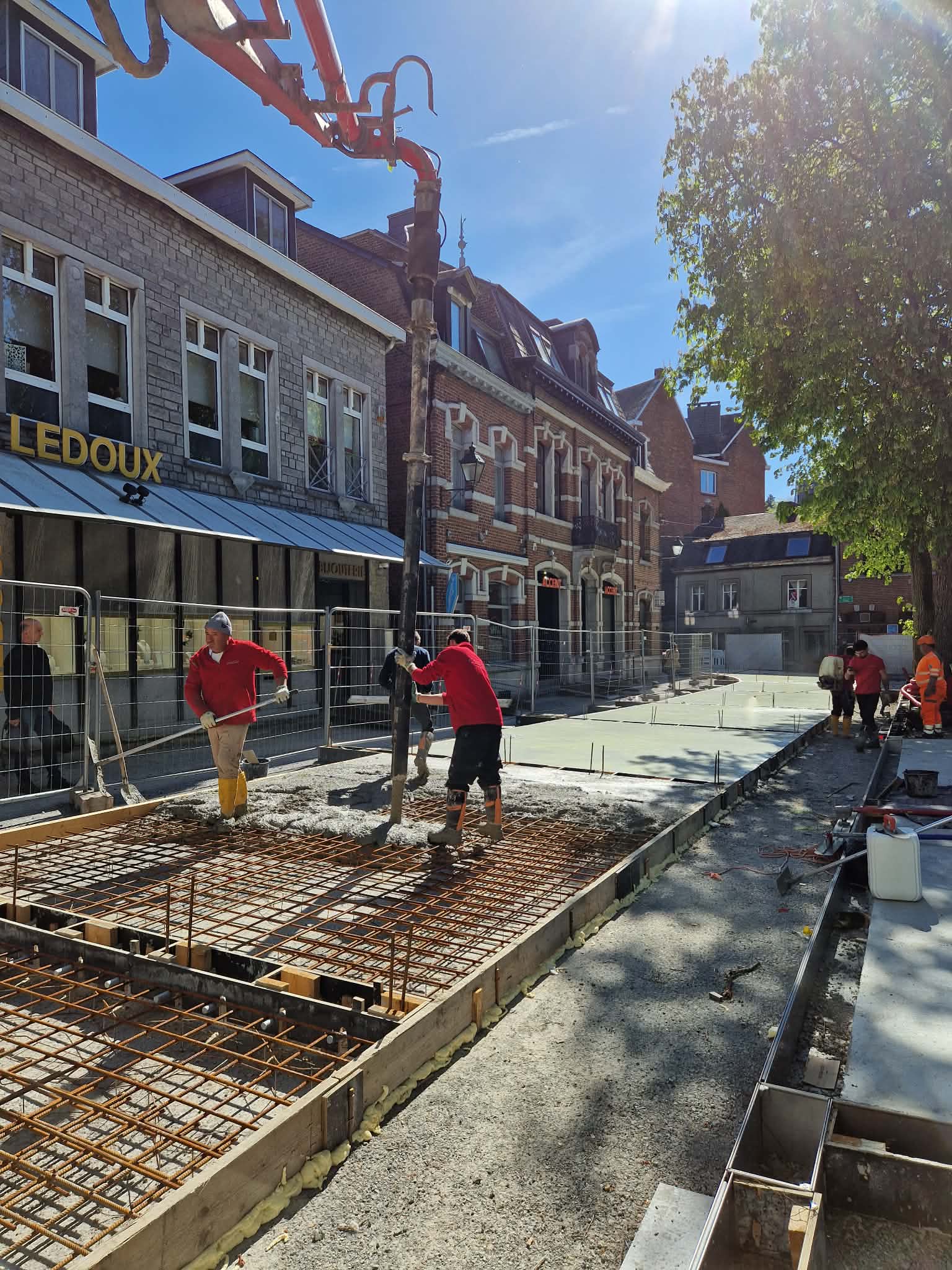 Ce jeudi 23 avril, bétonnage de la voirie, côté bijouterie Ledoux.