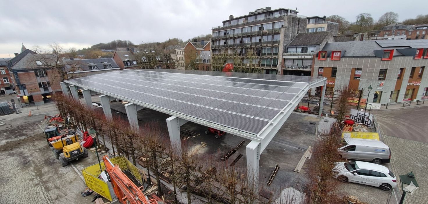 Selon l’architecte chargé de la réalisation du projet, le modèle de panneaux envisagé lors de l’esquisse de 2018, qui donnait davantage un effet de transparence, n’est plus disponible. Le choix s’est donc porté sur une technologie plus récente, laissant moins passer la lumière mais permettant une production d’énergie verte plus importante. L’installation, d’une puissance maximale de 150 kVa, permettra, selon les conditions d’ensoleillement, les pertes, etc., de couvrir l’équivalent de la consommation annuelle d’environ quarante foyers, via une Communauté d’énergie en cours de mise en place.